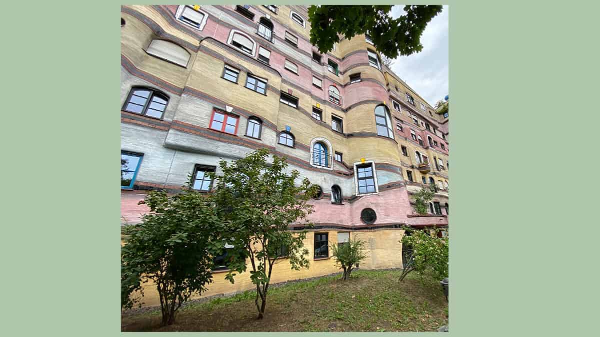 Inzoomen op het gebouw van architect Hundertwasser in Darmstadt
