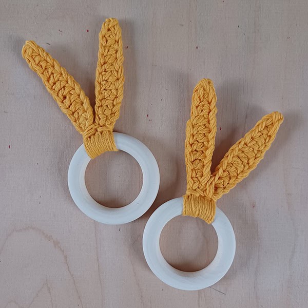 Het tweede oor doe je exact hetzelfde. Alleen aan het eind hecht je het ene oor nog aan het andere oor vast, zodat ze bij elkaar blijven. En klaar zijn je gehaakte paashaasoren.