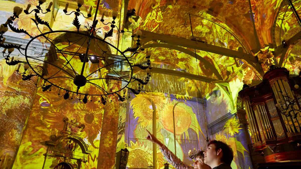 De voorstelling Vincent meets Rembrandt is de eerste 360° Son-et-Lumière-ervaring, die op deze schaal in een Rijksmonument te zien is. Je begeeft je te midden van een spectaculair, voortdurend bewegend canvas, gecreëerd door 38 laserprojectoren, die alle oppervlakken van de kerk verlichten. Zo waan je je middenin de werken van de meesters. Het verhaal wordt verteld aan de hand van 100 brieven van Vincent van Gogh aan zijn broer Theo. Je krijgt op deze manier een bijzonder inzicht in de bewondering die Van Gogh had voor het werk van Rembrandt.