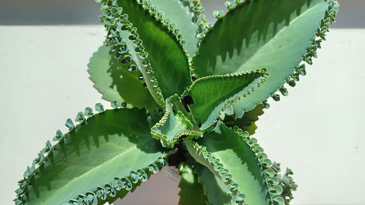 Haar officiële Latijnse naam is Kalanchoe daigremontiana. De plant komt uit de droge berggebieden van Madagascar. Dan begrijp je ook meteen dat je de Mother of Thousands niet te veel water moet geven.