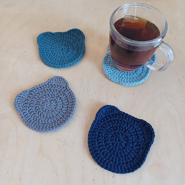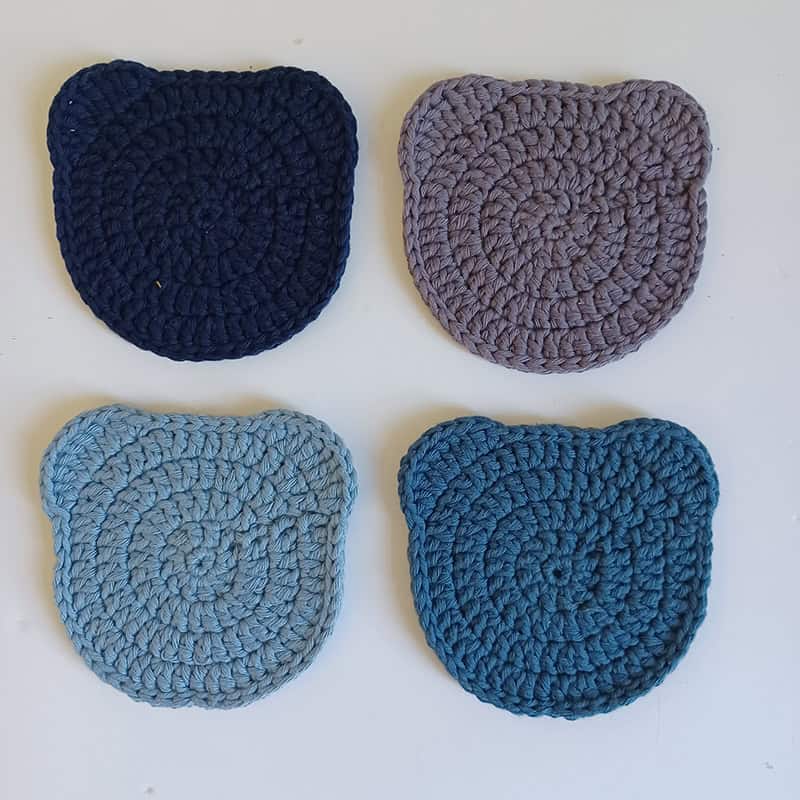 Gehaakte onderzetters Blauw, set van 4 met berenoortjes