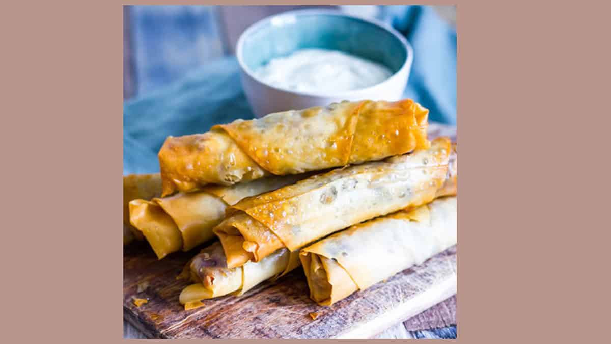 Knapperige auberginerolletjes met frisse dip